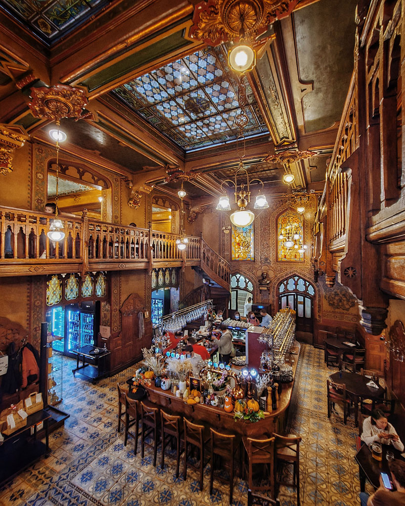 Founded in 1879, Caru’ cu Bere has been serving traditional Romanian food for well over a century. The restaurant is located in the Old Town and is instantly recognizable for its spectacular neo-Gothic architecture, featuring carved wood paneling, stained glass windows, painted murals, and a beautiful inner courtyard.