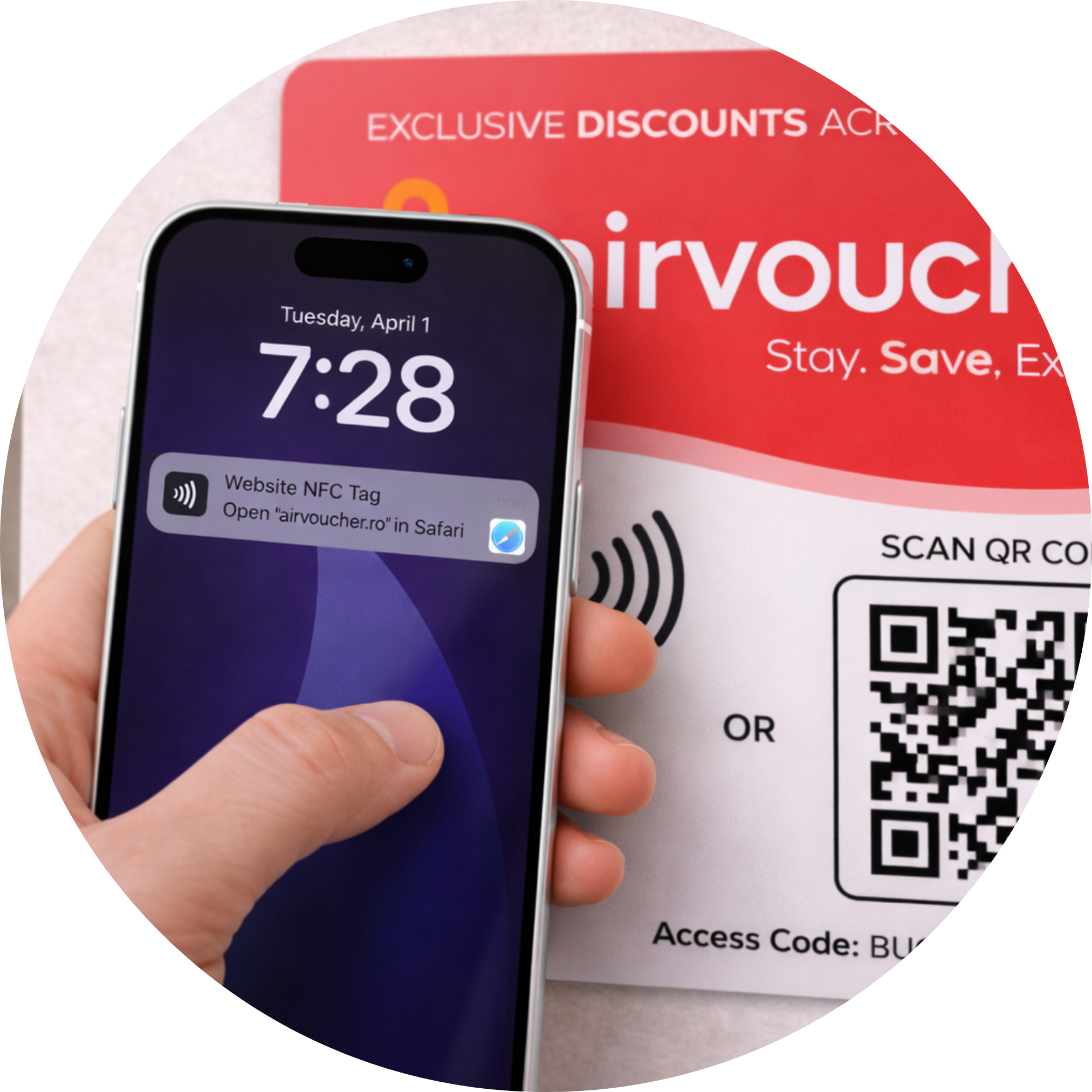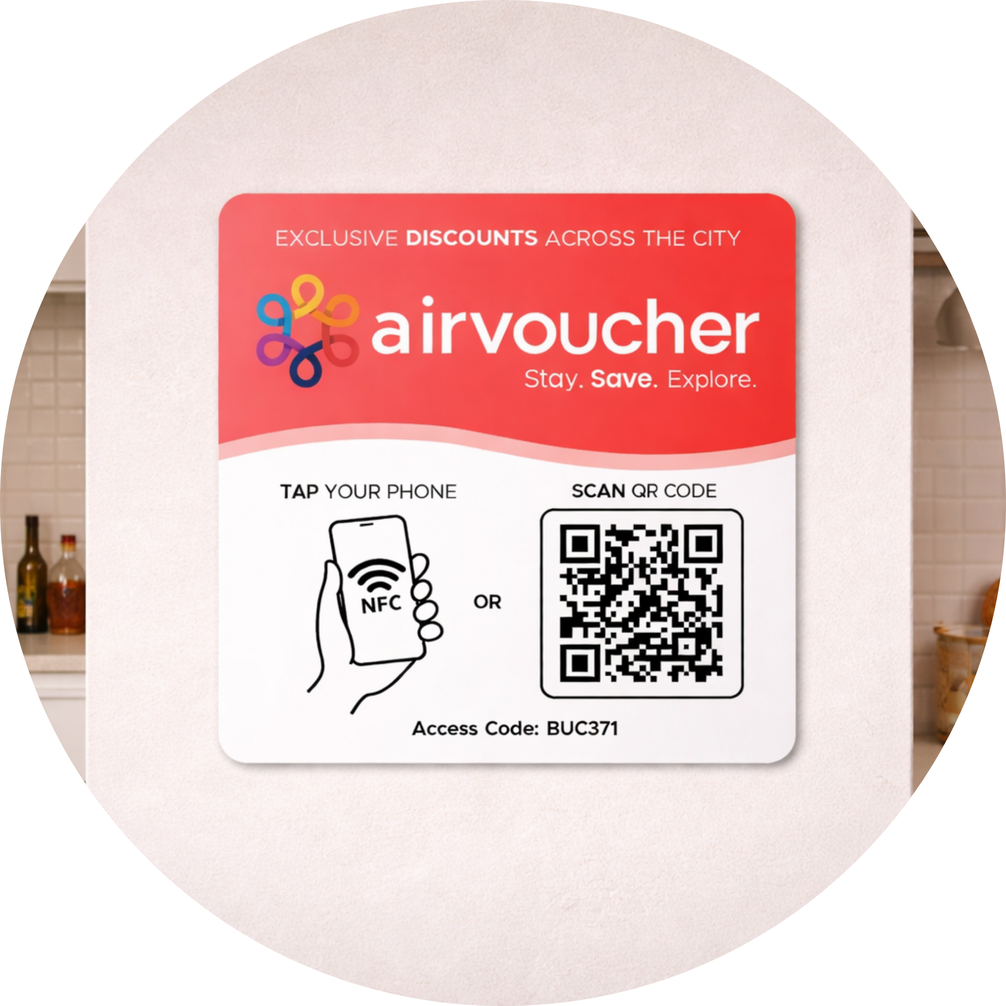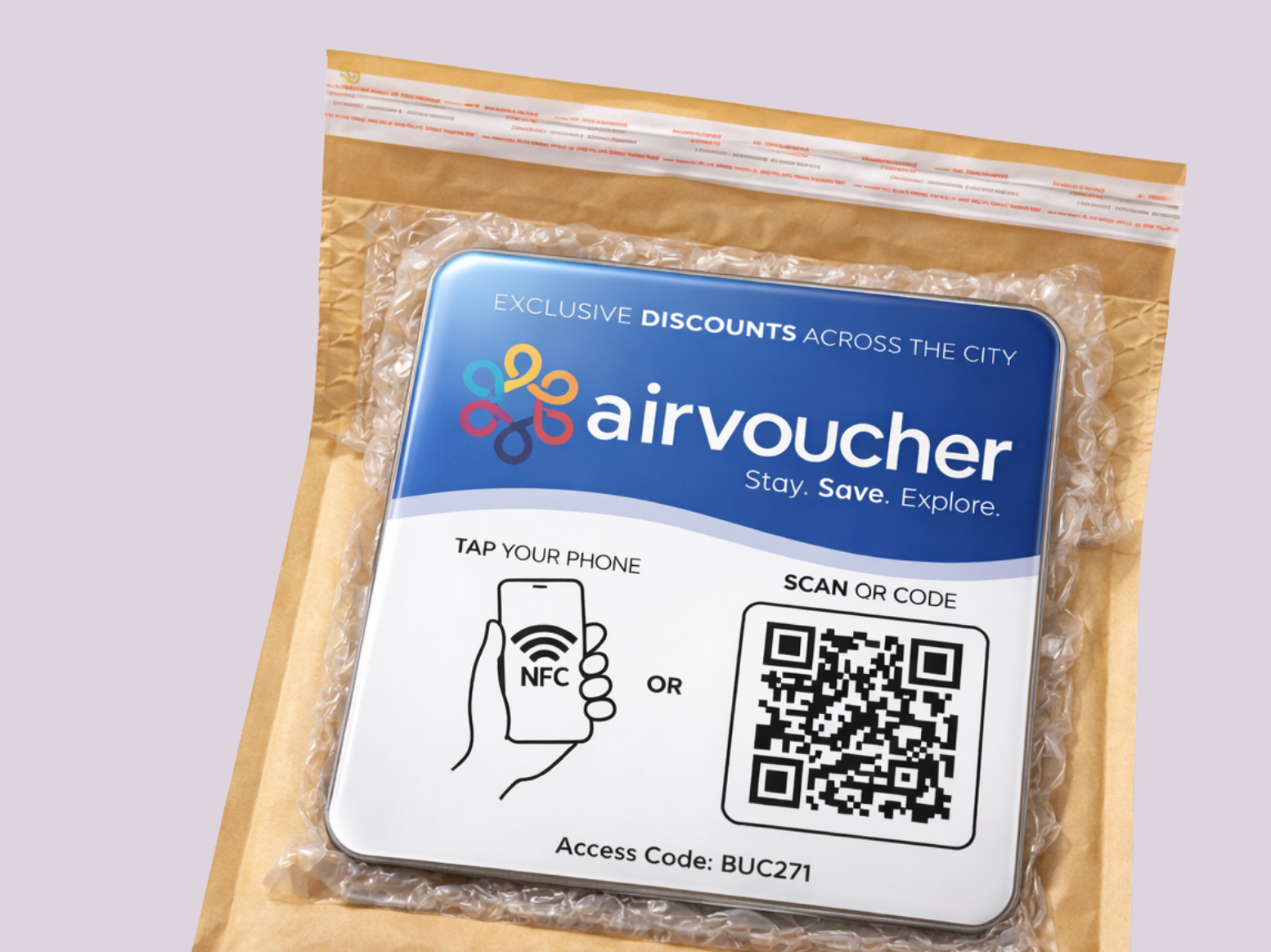 We send you free QR and NFC displays to place inside each room so guests can instantly access AirVoucher from their phone when they stay at your hotel.