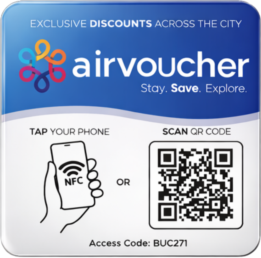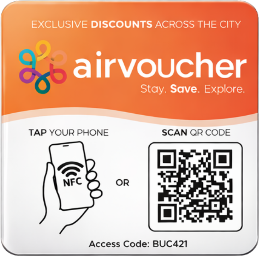 AirVoucher gives your guests access to exclusive local discounts and benefits across restaurants, bars, entertainment, and attractions. This enhances their experience in the city, adds value to their stay, and helps your property stand out with an added guest perk.